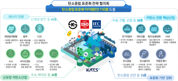 국표원은 지난 2월 업계와 대학, 연구소, 협단체 등 37개 기관이 참여하는 민관 협의체인‘탄소중립 표준화 전략 협의회’를 발족했으며 지난 4개월간 각계 전문가가 참여하는 분과위원회 활동을 거쳐 150개 표준화 아이템을 발굴했다.