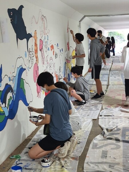 벽화는 시에서 페인트 등 재료를 지원했고 동백2동 주민자치위원회가 벽화 그리기에 참여하고 싶은 주민을 모집해 함께 그렸다.