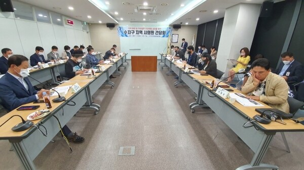 이날 간담회에는 윤원균 용인시의회 자치행정위원장 등 시의원 @명과 김정원 수지구청장 등 간부공무원 등 30명이 참석했다.