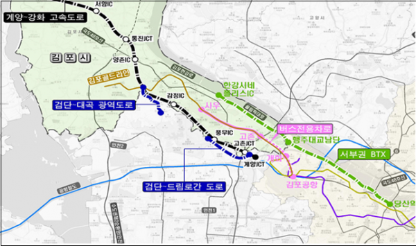 또한, 인천 검단과 김포 간 상호 접근성 강화를 위한 검단-대곡 광역도로 신설을 추진할 예정이며 검단에서 서울까지의 접근성 강화를 위한 검단-드림로 간 도로 신설도 ’23년 개통을 목표로 금년 7월 중 착공예정이다.