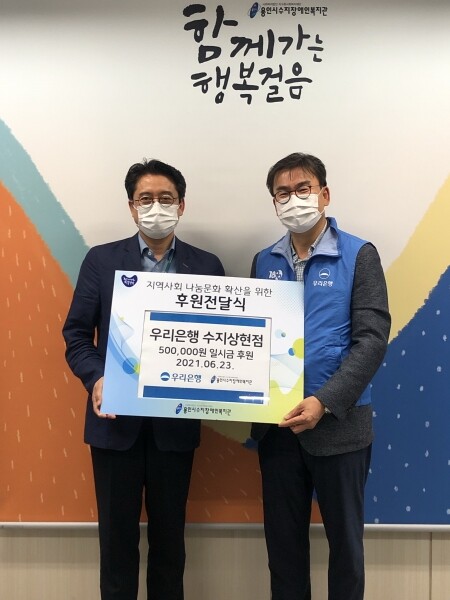 한근식 관장은 “장애인이 살기 좋은 우리 지역사회를 위해 오랜기간 든든한 지원자가 되어주시는 우리은행 수지상현점에 감사에 인사를 드린다”며 “후원 취지대로 안전한 복지관 운영에 힘쓰겠다”고 말했다.