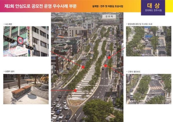 사업이 완료되어 현재 운영 중에 있는 안심도로 중에서는 전주시청의 ‘전주 첫마중길’이 대상으로 선정되어 국토교통부 장관상을 수상했다.