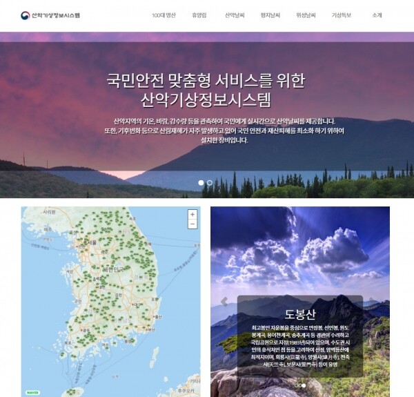 산림청 국립산림과학원에서는 산림재해 예방 및 국민 안전 도모를 위해 주요 산악지역에 산악기상관측망을 운영하고 있으며 산악기상정보시스템을 통해 실시간 고품질 정보를 제공하고 있다.