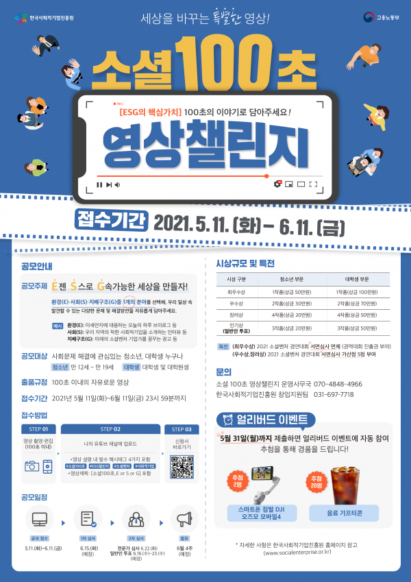 이번 공모전은 청소년과 대학생이 사회문제의 주체가 되어 사회적 가치를 실천하는 새로운 방법을 모색하기 위해 기획됐으며 5월 11일부터 6월 11일까지 한 달간 작품 공모를 진행했다.