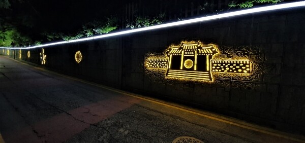 이에 동은 주민세 인상분 환원 사업으로 학교 앞 도로 양쪽 옹벽에 LED 벽화를 설치해 밤에도 안전하게 다닐 수 있도록 한 것이다.