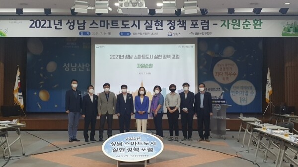 이번 정책포럼은 자원순환을 주제로 자원순환사회연대 김미화 이사장이 좌장을 맡았고 자원순환사회경제연구소 홍수열 소장이 순환경제의 개념과 재사용·업사이클센터 확대 및 자원순환 마을 만들기 등을 통한 성남시의 자원순환 도시 실현 방안에 대해 발제했다.