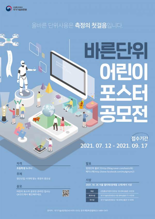 산업통상자원부 국가기술표준원은 7월 12일부터 9월 17일까지‘2021년 바른단위 사용 공모전’을 개최한다고 밝혔다.