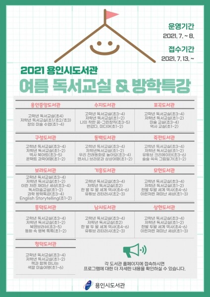 도서관 관계자는 “코로나19 시대에 맞춰 온라인으로 진행할 수 있는 여름방학 독서문화행사를 기획했다”며 “집콕 생활을 하고 있는 아이들에게 책과 친해질 수 있는 좋은 기회가 되길 바란다”고 말했다.