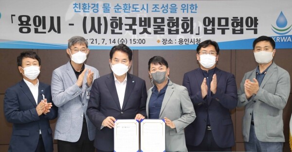 이날 협약식에는 백군기 용인시장과 최경영 한국빗물협회장 등 관계자 8명이 참석했다.