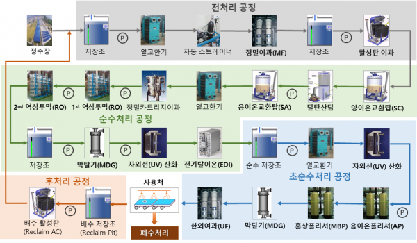 초순수는 수 백개의 반도체 생산 단위공정 중에 나오는 부산물, 오염물 등을 세정할 때 쓰이는 필수 공업용수로 초미세회로로 구성된 반도체를 세척해야 하기 때문에 총유기탄소량의 농도가 ‘10억분의 1’ 이하일 정도로 고순도를 유지해야 한다.