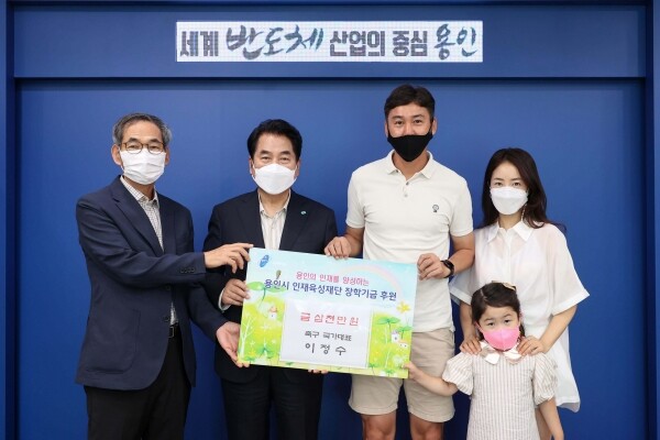 이날 용인시청에서 열린 기탁식에는 백군기 용인시장을 비롯해 김춘식 이사장, 이정수 선수 등이 참석했다.