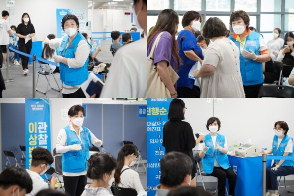 이날 장정순 위원장을 비롯해 문화복지위원회 소속 김상수, 이은경, 명지선 의원과 유향금 경제환경위원장 등 5명은 예방접종센터에서 안내를 하고 접종 대상자들의 안부를 묻는 한편 예방접종 후의 주의사항에 대해 자세히 설명하면서 신속한 예방접종을 지원했다.