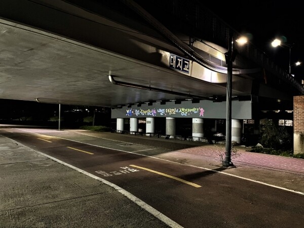 죽전교와 대지교에는 ‘오늘도 수고한 당신 내일은 더 좋은 일이 생길거예요’, ‘여전히 당신이 최고예요’등 4가지 문구가 번갈아 나타나고. 자전거도로 합류 구간에는 안전사고 예방을 위해 ‘보행자 배려, 자전거 조심’문구가 나타난다.