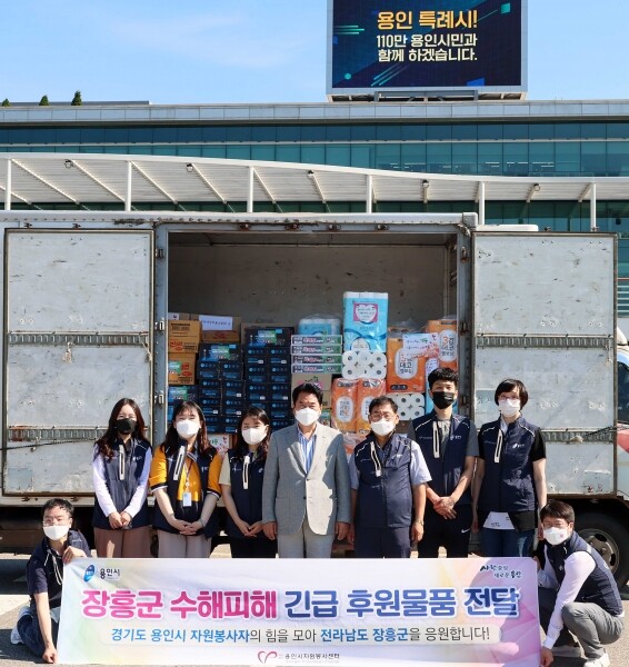 용인시자원봉사센터는 22일 전라남도 장흥군자원봉사센터에 화장지, 생수, 라면 등 1100만원 상당의 생필품을 전달했다.