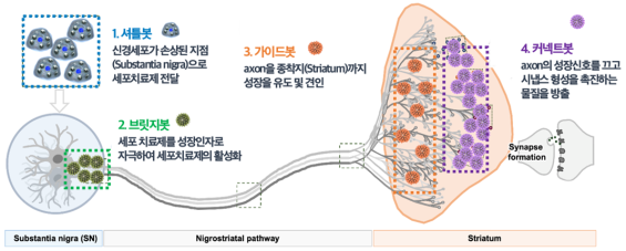 이를 해결하기 위해 뇌 신경망 형성을 위한 줄기세포 등에 자성을 부여하고 제어가 가능한 멀티봇을 개발해, 실제 신경 조직과 동일한 수준의 도파민 신경회로망 재건, 전임상시험을 통한 안전성·유효성 검증을 하고자 한다.