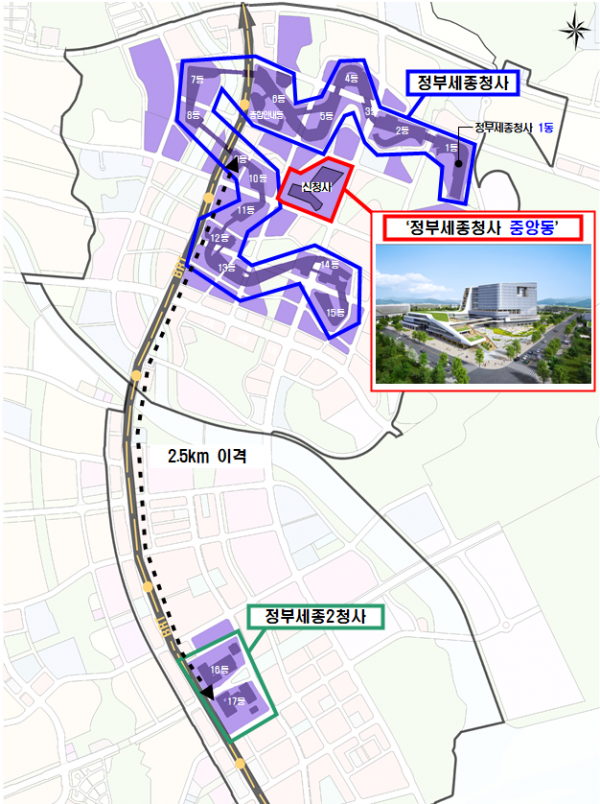 기존 청사는 15개의 건물이 환상형으로 연결되어 ‘정부세종청사 1동~15동’으로 불리고 있다.