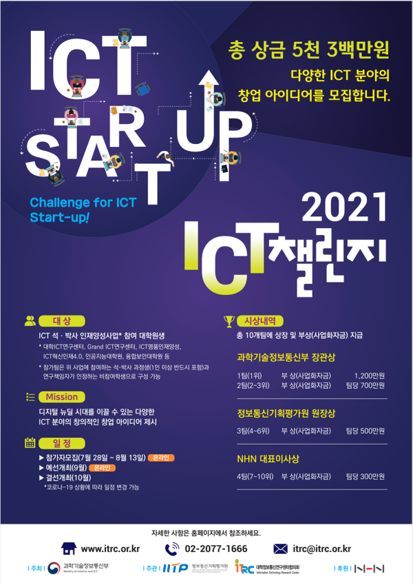 과기정통부 이승원 정보통신산업정책관은 “ICT 챌린지 2021을 통해 학생들이 그동안 매진해 도출한 ICT 연구성과물들이 기술 창업으로 결실을 맺어 디지털 뉴딜 성공을 이끌 수 있도록 아낌없이 지원하겠다”고 밝혔다.