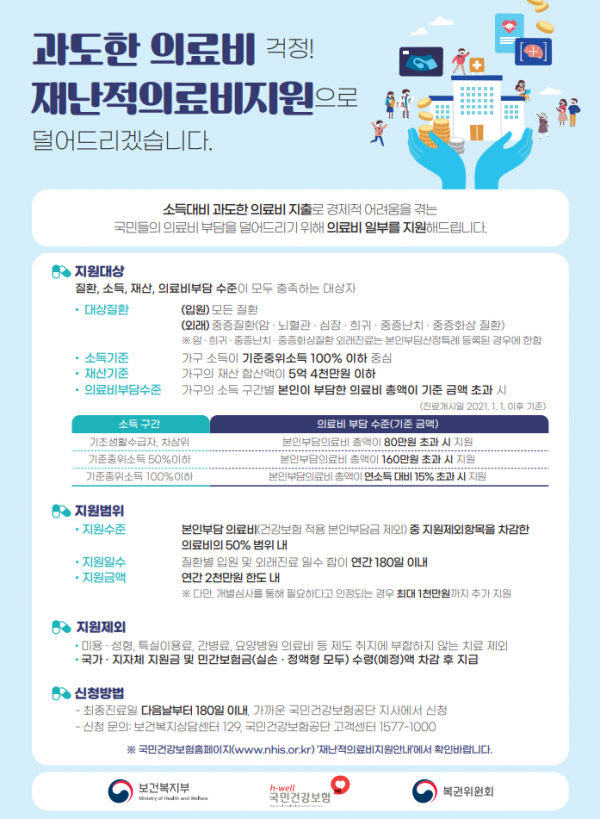 이번 회의에서 위원회는, 재난적의료비 지원 확대를 의결하고 2021년 재난적의료비 지원사업 추진현황 등에 대해 보고 받았다.