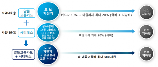 알뜰교통카드와 스마트 시티패스의 연계사업은 각각의 앱을 구동해야만 마일리지를 적립할 수 있는 불편을 해결하기 위해 적극행정의 일환으로 국토부 대광위와 부천시 간 협업을 통해 추진됐으며 알뜰교통카드 기능을 부천시 스마트 시티패스 앱으로 일원화하고 이용혜택까지 강화해 대중교통비용의 최대 50%까지 절감할 수 있게 개선했다.