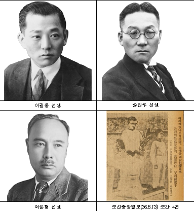 세 명의 선생은 1936년 베를린 올림픽 마라톤에서 우승한 손기정 선수의 가슴 일장기를 지우고 보도한 ‘일장기 말소사건’의 실행자와 언론사 책임자들로 암울한 시기에 민족정신을 새롭게 일깨운 역할을 했다.