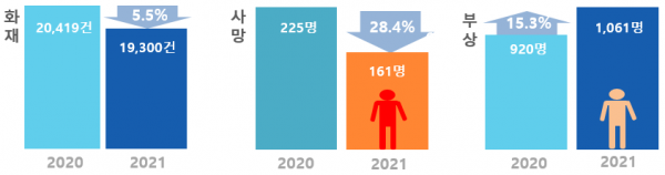 남화영 소방정책국장은“화재로 인한 인명피해가 감소하는 추세를 계속 이어나갈 수 있도록, 다양한 화재 예방정책을 추진하고 소방공무원 및 소방장비의 긴급대응 태세도 확고히 유지하겠다”고 말하고 국민들의 화재 예방 안전수칙 준수도 당부했다.