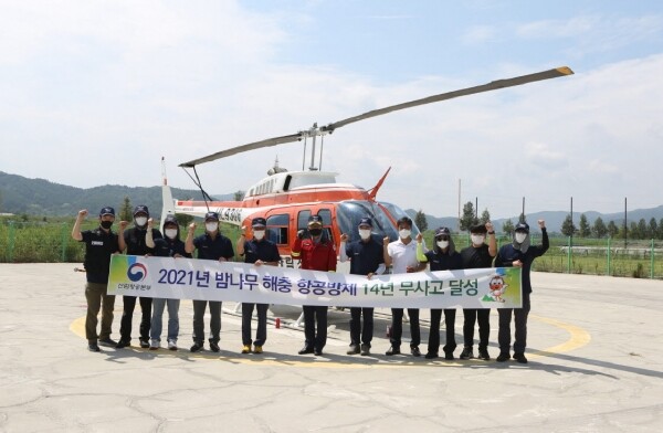 고기연 산림항공본부장은 “승무원 및 각 지자체 담당자들이 악조건 속에서 안전사항을 준수하고 협력해 항공방제 무사고 14년을 달성할 수 있었다”며 “산림청 산림항공본부는 앞으로도 임업인 농가 소득향상을 위한 지속적인 지원과 사고 예방을 위한 적극적 활동으로 무사고 안전운항을 이어 가겠다”고 말했다.