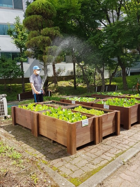 텃밭 상자는 샛별마을 동성·라이프·한신라이프·장안 경로당 주변에 3개~15개씩 설치돼 어르신들이 상추, 들깨, 파 모종을 심어 함께 가꾸고 있다.