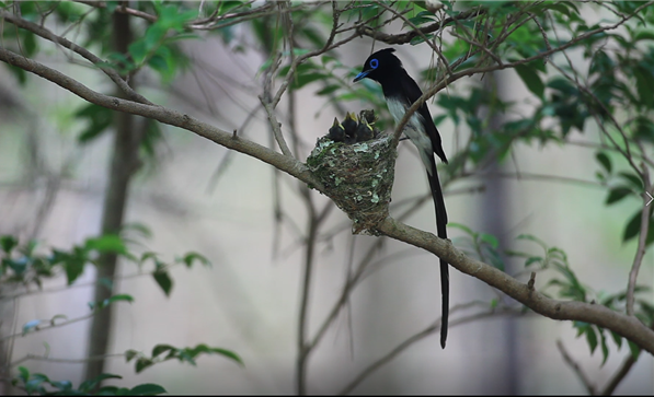 이번 영상에서 긴꼬리딱새 수컷과 암컷이 번갈아 가며 새끼를 키우는 모습이 잡혔으며 올해 6월 국립공원공단 직원과 자원봉사자가 한려해상국립공원 내에서 조류를 조사하는 과정 중에 촬영됐다.