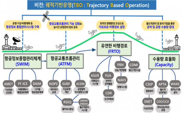 기존 ‘항공교통관제사의 경험과 능력에 의해 판단’되던 항공기의 출·도착 순서를 보다 ‘과학적으로 정밀하게 관리’하기 위해 관제장비와 항행시설을 디지털화·첨단화하고 4D개념의 궤적기반운영으로 전환해 효율성도 개선해나간다.