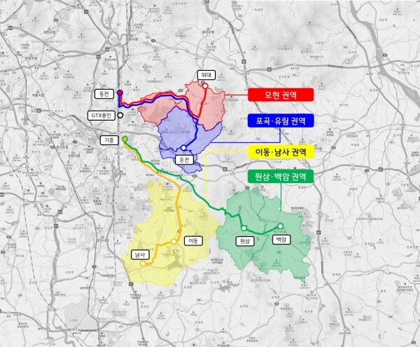 시는 시민들이 편리하게 지하철로 환승할 수 있도록 처인구를 모현, 포곡·유림, 이동·남사, 원삼·백암 등 4개 권역으로 나눠 노선을 편성했다.