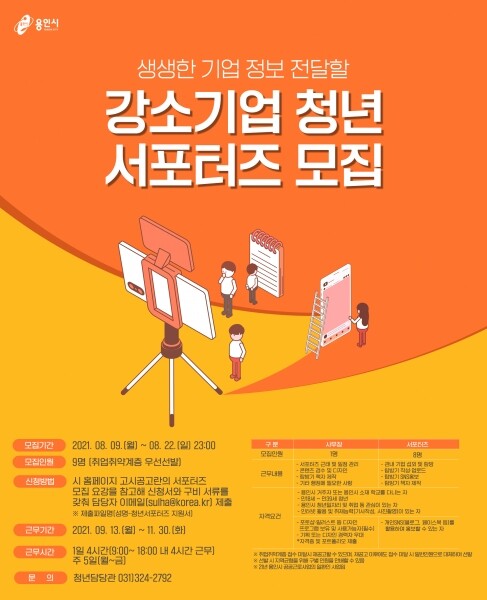 시 관계자는 “청년의 눈높이에서 우수 중소기업을 직접 취재·전달함으로써 청년들이 원하는 기업 정보를 제공하는 데 큰 도움이 될 것”이라며 “재능있고 역량 있는 청년들의 많은 참여를 부탁한다”고 말했다.