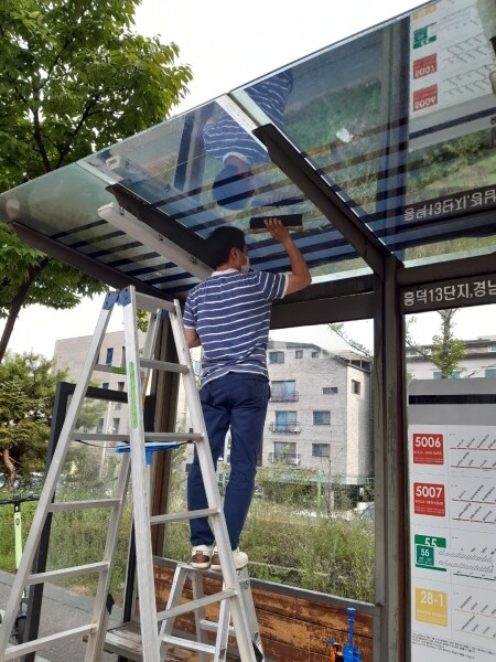 구는 앞서 지난달 21일부터 이번 사업을 위해 관내 전체 지붕형 버스·택시 승강장 507개를 대상으로 조사를 진행했고 이중 오는 15일까지 주민들의 이용이 가장 많은 30개소 버스승강장에 우선적으로 열차단 필름을 설치할 계획이라고 전했다.