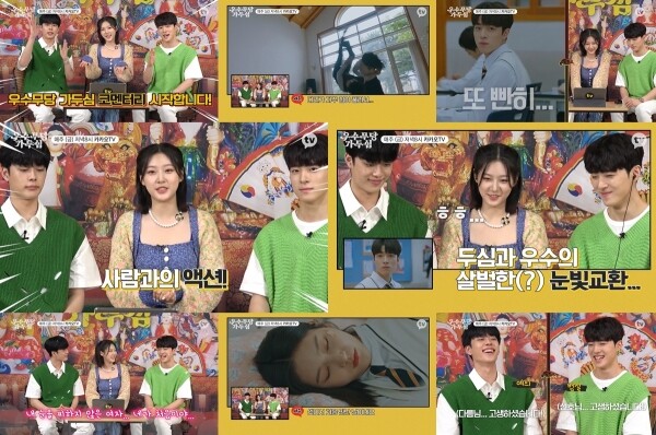 이어 세 사람은 수상한 전학생 두심과 전교 1등 우수의 첫 만남을 되짚어보며 깨알 리액션을 선보여 보는 이들을 흐뭇하게 했다.
