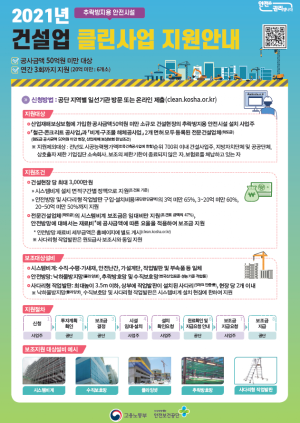 한편 이날 전국의 고용노동부 산업안전보건감독관, 한국산업안전보건공단 점검팀은 전국 2,000여 개 건설현장을 대상으로 추락 사고 예방을 위한 안전조치, 코로나19 방역 수칙 및 폭염 관련 예방수칙 등의 준수 여부를 확인하고 있다.