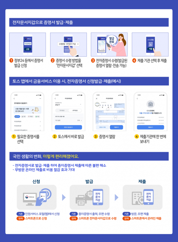 행정안전부는 토스 앱에서 전자증명서를 쉽게 이용할 수 있도록 8월 17일부터 서비스를 제공한다고 밝혔다.