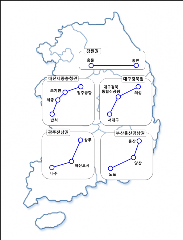 ‘광역철도’는 권역별 메가시티 내 주요 거점 간의 이동시간과 거리를 효율적으로 단축할 수 있는 핵심 인프라 수단이지만, 수도권에 비해 비수도권은 광역철도망이 미비해 메가시티 구축을 통한 단일 경제·생활권 형성에 제약이 되고 있었다.