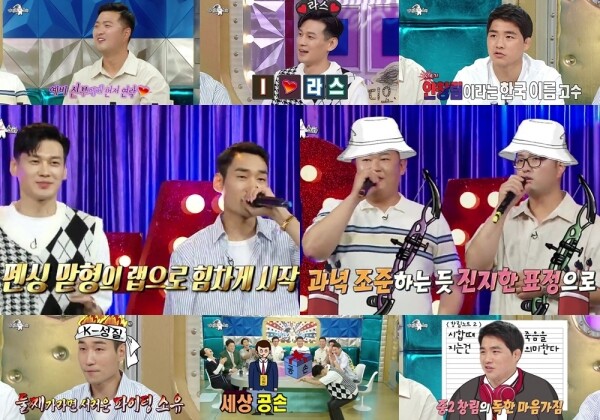 우선 양궁 남자 단체전에서 금메달을 획득, 큰 감동을 안겼던 양궁 국가대표 오진혁과 김우진은 노련한 베테랑 궁사의 카리스마 뒤 귀엽고 푸근한 매력과 차진 입담을 뽐냈다.