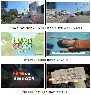 최우수 작품으로 선정된 경기북부소방본부의 ‘119구급차 출동길 뚫어주는 교통경찰 오토바이’는 실제 구급차가 출동하는 영상을 편집한 것으로 흥미와 함께 긴급차량 출동로 확보 협조 방법 등을 알려줘 소방안전문화 확산에 기여한 점이 많은 호응을 받았다.