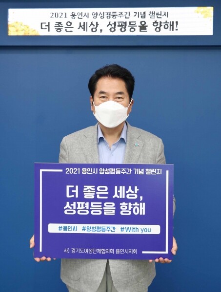 백 시장은 ‘더 좋은 세상, 성평등을 향해’라는 슬로건으로 챌린지 첫 주자로 참여했으며 다음 참여자로 이윤송 경기여협 용인시지회장을 지목했다.