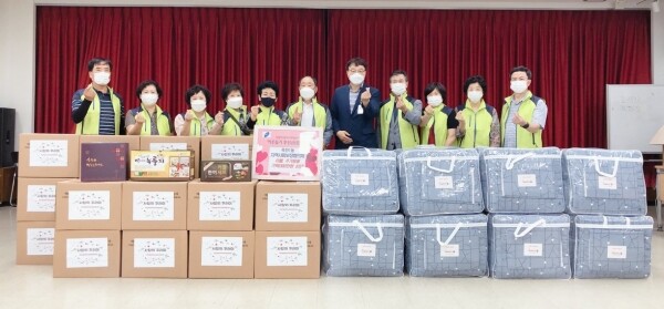 이날 지역사회보장협의체 위원들은 방역 수칙에 따라 조를 나눠 각 가정에 꾸러미를 전달하고 이들의 건강 상태도 살폈다.