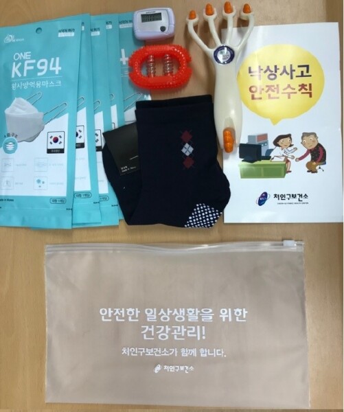 꾸러미는 만보기, 미끄럼방지 양말, 건강 지압기, 롤러 마사지기, KF94 마스크, 낙상예방 리플릿 등 총 6종으로 구성돼 있으며 다음달 1일부터 30일까지 용인시처인장애인복지관, 용인중앙장애인자립생활센터 등과 연계해 전달할 예정이다.