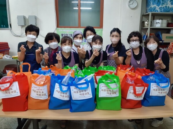 이날 주민자치위원들은 방역 수칙에 따라 조를 나눠 각 어르신에게 김치와 함께 여름 과일을 직접 전달하고 이들의 건강 상태도 확인했다.