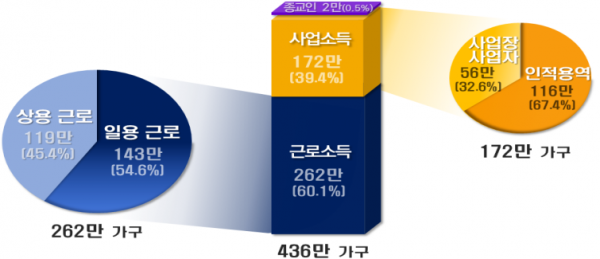 지난해 12월과 올해 6월에 지급한 상·하반기분 근로장려금을 포함해 총 487만 가구, 4조 9,845억원으로 ’19년 귀속분보다 121억원 증가했다.