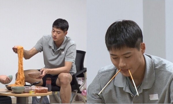 식사 자리에는 두 사람 뿐이지만 오상욱이 집어 든 비빔라면은 무려 7봉지. 평소 이 정도 양은 거뜬히 먹는다는 대식가 면모에 절친마저 입을 다물지 못했다는 전언이다.