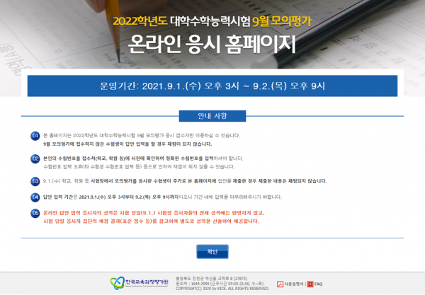 해당 홈페이지는 9월 2일 저녁 9시까지 운영할 예정이며 홈페이지에 접속해 답안을 입력 후 제출하면 별도의 성적을 제공한다.