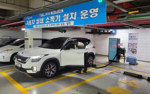 차량용 실내 소독기는 구청 지하 1층 주차장에서 24시간 운영하며 소독을 원하는 차량을 소독기 가까이 주차한 후 사용하면 된다.