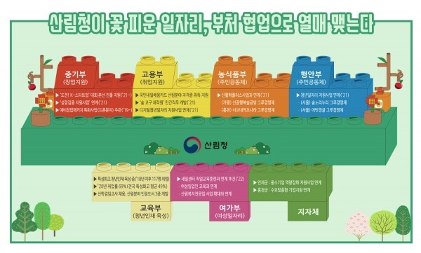 한편 농식품부 주관 ‘신활력플러스사업’과 행정안전부 주관 ‘지역주도형 청년일자리 지원사업’ 등에는 산림청 산림일자리발전소 발굴 그루경영체 등이 참여해 사업 고도화를 위한 협업을 진행하고 있다.