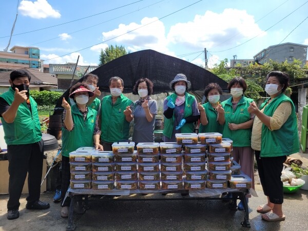 이날 새마을회 회원 20명은 정성스럽게 물김치와 얼갈이김치를 담아 대상 어르신 가정에 직접 전달하며 안부를 살폈다.