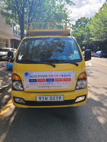 연휴 기간 19일과 21일 22일은 쓰레기 수거가 이루어지지 않는다.