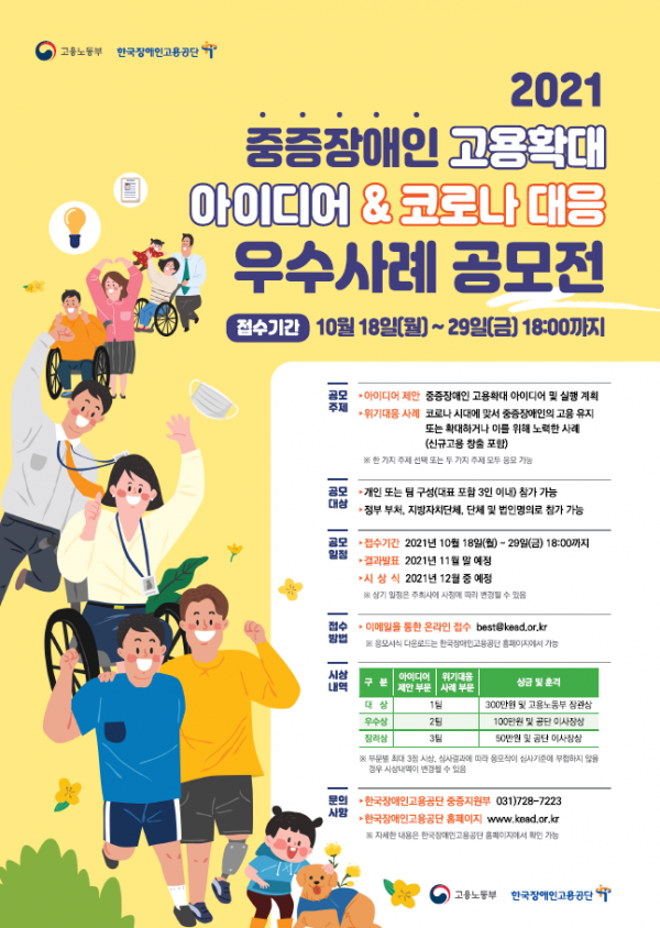 특히 코로나19가 장기화하는 어려운 상황에서도 중증장애인의 일자리를 확대하거나 지켜 낸 사례도 공모전의 주제에 포함된다.